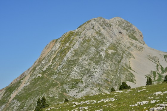 immense et infranchissable , on a du mal a imaginer le gravir et pourtant ! avec des jumelles , de trés nombreux marcheurs descendent le flanc sud