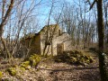 (9) 100m plus loin, quitter la route pour emprunter, à gauche, un large chemin en montée (panneau sens interdit). Ce dernier arrive à une fourche, où il faut prendre à droite, s'aplanit pour passer devant les ruines de la chapelle de Saint-Caprais, puis redescend pour rejoindre la D97.