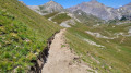 (5) Au dernier, prendre le sentier (indications), le suivre pour rejoindre, sous la crête de Terre Blanche, le Col du Pansier. C'est le début de l'ensemble des lacs de Néal.