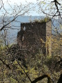 (6) Partir à gauche, direction Le Château 0,7 km. Grimper par le sentier jusqu'à une falaise et bifurquer à gauche pour redescendre sur les ruines du château. On ne voit le château qu'au dernier moment.