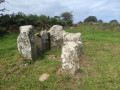 (5) Quitter la chapelle en remontant la route au Nord et en laissant le calvaire à main droite. Faire environ 120 m et, au carrefour de routes, prendre à gauche, plein Ouest, le chemin carrossable indiqué Gwele Sant Yann (le lit de Saint-Jean). Après 50 m, dépasser les restes de l'allée couverte (dolmen) à main droite. Retrouver la route à Runtannic