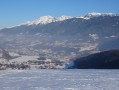(4) Une fois arrivé aux habitations et à la route goudronnée (Chemin des Imberts), prendre à droite un petit chemin qui longe une clôture et remonte légèrement jusqu'à rejoindre un chemin plus large qui arrive par la gauche. Bifurquez à droite pour continuer l'ascension sur ce bon chemin. La vue se dégage petit à petit sur les massifs environnants.