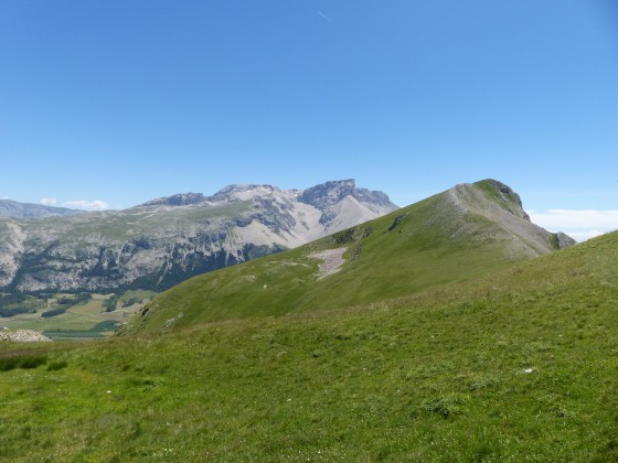Pendant l'ascension vers le Chauvet. En arrière plan le Plateau de Bure.