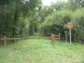(11) Juste avant le virage à 90° du chemin, prendre à gauche et passer la barrière de la Sente Verte de l'ancienne voie ferrée Bourges-Aubigny-sur-Nère à suivre sur 40 km, (rails déposés).