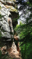 (2) Traverser la route et prendre, en face, le sentier balisé Anneau Vert qui mène à droite, par une raide montée, au Rocher de l'Erbsenfelsen.
