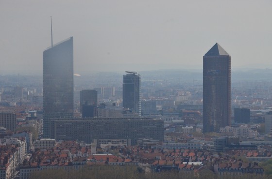 Vue depuis la basilique vers les grands immeubles de Lyon