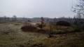 (8) Peu après un panneau routier côté gauche, s'engager à gauche dans un chemin herbeux entre les champs. Au croisement, aller tout droit. Le chemin vire à droite puis, après une centaine de mètres, à gauche en légère montée.