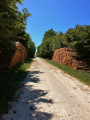Au bout de la ligne droite décrite par le chemin, laisser le chemin de droite et poursuivre dans le chemin qui vire sur la gauche et serpente à quelques mètres à l'intérieur du bois avec un grand champ sur la droite. Le chemin à présent plus étroit finit par déboucher sur un bon chemin d'exploitation (GR®36).