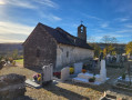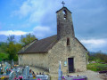 (14) Prendre en face la petite route descendant vers Brénaz, balisée de Jaune. Après un crochet à gauche, la quitter pour prendre un chemin à droite, au Sud, descendant droit vers la Chapelle Saint-Christophe, au milieu du cimetière.