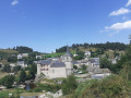 (4) À l'entrée du village, virer à gauche sur la route principale et rejoindre la place centrale, la longer à main droite. À l'intersection, poursuivre à droite, laisser l'église en contrebas et rejoindre le rond-point au bout de la rue.