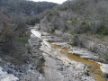 (6) Le chemin descend ensuite pratiquement dans le lit du ruisseau, suit la direction du Nord, traverse ensuite le ruisseau et aborde en rive droite une succession de méandres vers l'Ouest. Après la Fontaine du Vedel, continuer dans le lit du ruisseau jusqu'à croiser le GR®® 44 A (marques Rouges et Blanches bien visibles).