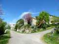(2) Prendre le sentier qui descend à gauche de l'église, fléchage Bleu, Rouge, Vert, Chemin de Ronde et le suivre jusqu'à la route D219 à prendre vers la droite en passant devant le cimetière. Continuer la route jusqu'à la station d'épuration sur la droite cachée derrière les arbres.