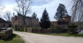 (11) S'engager sur le chemin suivant, 80 m après le hameau 'les Fourneaux'. Prendre à gauche à l'intersection avec une route étroite. Ignorer les départs latéraux. Juste après le Pavillon, le chemin franchit une grille au sol qui stoppe le passage des animaux, puis longe l'Étang Viez pour aboutir sur une allée transversale, face au château Courbanton masqué par une haie.