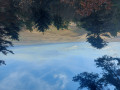 (9) Poursuivre en traversant des vergers d'arbres fruitiers. A une intersection, laisser le chemin venant de la droite et descendre à gauche sur une portion asphaltée vers un large chemin où se trouvent un banc et une sculpture nommée Betrachten. À l'intersection située à ce banc et cette sculpture prendre à droite Losange Jaune et laisser le chemin descendant et celui venant de gauche. Passer devant une sculpture, puis devant une nouvelle sculpture rejoindre un chemin à prendre en descente. Arriver à une intersection ( encore une sculpture). Laisser le chemin de droite direction Jungholz pour prendre le chemin Knünteltalweg direction Siebeneichen. Laisser à gauche un chemin se dirigeant vers la pâture ( présence d'un banc à droite sur ce chemin ) et continuer en descente en obliquant légèrement à droite en suivant le Losange Jaune. Après la traversée de la combe, arriver devant une ferme et un enclos de daims.
