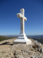 (5) Embranchement délicat : laisser à gauche (cairn) le sentier qui sera emprunté à la descente et poursuivre en gardant la même direction sur un terrain caillouteux instable et pentu. Atteindre la Croix de Garlaban qui marque le sommet.
