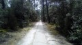 (19) Après environ 1,2km, un panneau indique que la piste cimentée est interdite aux cyclistes du fait de sa détérioration : virer alors à gauche vers la Route forestière des Phares, puis tout de suite à droite sur une piste goudronnée qui prend la suite du chemin sableux longé auparavant. Entamer une montée.