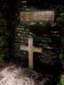Descendre le chemin sur 100 m, la stèle est sur la droite, contre le mur et un poulailler, au fond.