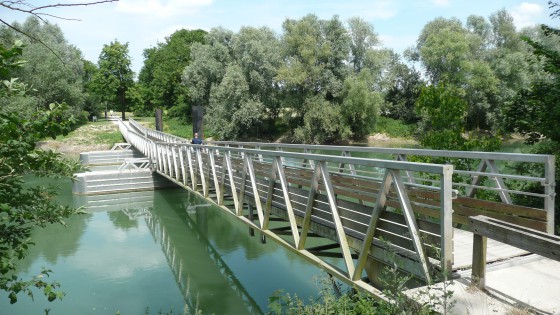 Cette passerelle flottante permet de franchir le canal d'exutoire du moulin de la chocolaterie