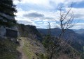 Le sentier monte en forêt et trouve vite des rochers faciles à grimper où par temps humide, il faut être prudent. En lisière on a un beau point de vue sur la "Vierge du Vercors".