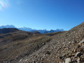 (9) Un sentier part Sud-Ouest, d'abord en ligne de crête puis un peu plus bas. Il surplombe les lacs de la Mine et aboutit au Col du Chardonnet Sud. Rejoindre le GR®57.