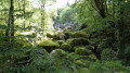 (1) La grotte est repérée par une inscription sur un rocher. Il est préférable de ne pas s'y aventurer. Elle est dangereuse pour les non-initiés. Faire demi-tour, remonter le sentier, retraverser la route et poursuivre, en face, le sentier balisé qui longe le ruisseau et les gros boulets de granit. Le sentier monte sous un couvert de verdure. Passer les deux bras d'eau par des petits ponts et atteindre le troisième passage.