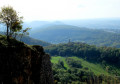 (D/A) Profitez de la vue du belvédère et descendez à gauche le petit pré en contre-bas du point de vue. À la clairière, poursuivez tout droit sur la ligne de crête, longeant les fossés du fort.