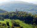 À l'extrémité des ruines, quand le sentier amorce le retour, abandonnez-le pour grimper à gauche au pied du donjon par les petites marches de pierre et une passerelle métallique. Un point de vue sur le vallon de Montfaucon et la vallée du Doubs, la Citadelle et les monts bisontins.