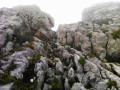 (8) Poursuivre ce sentier vers le (Nord-Nord-Est) qui recèle quelques passages aériens et parvient à un ressaut rocheux barrant la pente (Alt 1760 m).