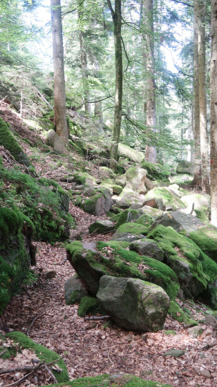 L'infernale ainsi désignée par le Club Vosgien (balisage) est un sentier étroit qui serpente au milieu de chaos de roches ; plusieurs sources le coupent.