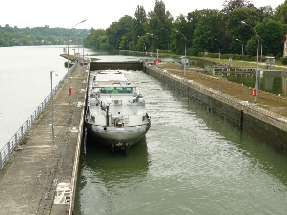 Une péniche attend l'ouverture des portes pour poursuivre sa route.
