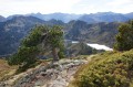 (3) Du pic, descendre direction Est et suivre une trace peu marquée, balisée de cairns, pour rejoindre rapidement un sentier plus large et plus évident.