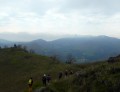 (4) Pour descendre, suivre l'unique sentier, il est balisé en Jaune, la pente est douce. Mais il faut faire attention car il traverse des éboulis et les pierres ne sont pas toutes stables. On aperçoit le sommet du Baïgura en face, au loin, d'où s'envolent les parapentistes du pays basque. Notre chemin est bientôt rejoint par le GR®10.