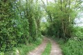 (4) Au croisement en T, tourner à gauche dans un chemin ombragé. Traverser une petite route et continuer en face entre les champs ouverts.