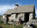 (7) Arriver à la cabane en fond de vallon. Une source alimente l'abreuvoir à côté de cette cabane. Sur la gauche le Casque du Lhéris et au fond le Col du Lhéris.