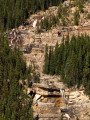 (6) Suivre à gauche le Twin Falls Trail (ignorer le Yoho Glacier Trail à droite). Descendre vers un camping et franchir un ruisseau. Remonter de l'autre côté vers Le Chalet (maison de thé). Monter régulièrement avec quelque virages et atteindre le point de vue sur les Twin Falls.