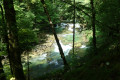 (2) Après 200 mètres de descente, à une nouvelle bifurcation du sentier repéré par une pancarte, vous prenez la voie de gauche descendant vers la source du Pontet et ses petites cascades, enchâssées dans la roche. Quand le débit est faible, il semblerait que l'on ait accès au fond de la grotte. Je n'ai pas vérifié, donc prudence! Ses abords boisés ont constitué le cadre de la "Remise au Chevreuil" de Courbet. Le Pontet rejoint sa grande sœur, la Loue, faites de même en rebroussant chemin en prenant à gauche à la précédente pancarte.