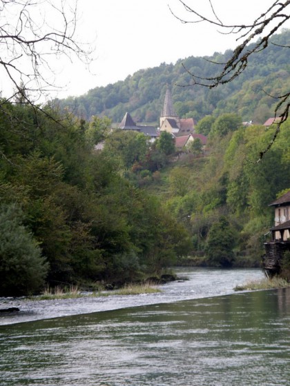 La Loue verte émeraude est entrecoupée par des rapides et des cascades dont la plus remarquable est le Grand Saut.