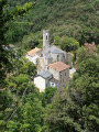 (11) Prendre la volée de marches à droite, passer devant l'entrée de l'église (fermée au moment de mon passage) et suivre l'étroit sentier qui grimpe raide dans la forêt.