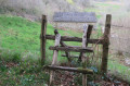 (1) Prendre le chemin de gauche et passer devant la grange. Celui-ci grimpe dans les bosquets. Passer très rapidement vers une ruine. Parfois à découvert ou sous quelques arbres, suivre l'unique chemin jusqu'à la route.