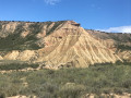 (2) Prendre le chemin de droite qui mène le long du flanc est de la colline "Cabezo de las Cortinas" (364 m). Puis continuer jusqu'à arriver en haut, faire le tour du plateau. De ce promontoire visualiser la suite de la promenade qui va se dérouler dans la vallée. Redescendre par le même chemin sur environ 200 m jusqu'à bifurquer franchement à gauche vers le Nord : il faudra se faire son chemin, pour aller à la lisière du champ en contrebas.