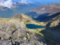 (3) Prendre tout d'abord au Nord-Ouest pour éviter le première barre rocheuse en-dessous du col, puis remonter en lacets vers le sommet bien visible sur la droite. La fin de l'ascension s'effectue sur la ligne de crête entre le col et le sommet.