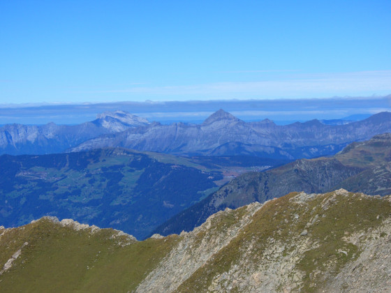 Le Massif du Mont Blanc et la Vallée des Chapieux depuis le sommet