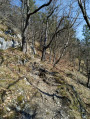 (2) Prendre à gauche en direction de "Sommet de Roche Colombe" et grimper une centaine de mètres pour arriver au point 817 (la partie la plus difficile). Ensuite continuer le sentier relativement plat qui suit la crête.