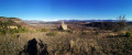 (2) Bifurquer à gauche et traverser ce hameau. La route forestière devient chemin et monte agréablement. On aperçoit bientôt les ruines d'un vieux village que l'on contourne par la droite. Continuer à monter en passant au Nord de ces ruines et arriver sur une grande esplanade où la vue est magnifique.
