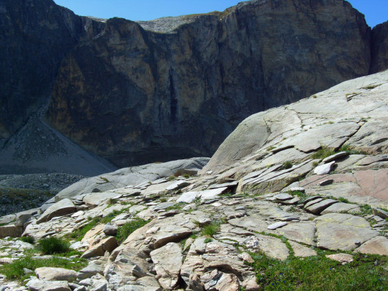 vers l’Aiguille de Scolette, Bramanette et le Grand Bec d’Etache dominant le Plan d’Etache