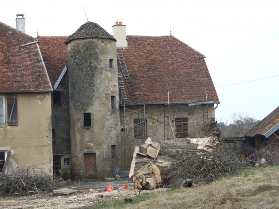 Ancienne maison de maître avec tour cylindrique et ferme attenante à Fontenelle-Montby. Vestiges d'un très vieux tilleul de belles dimensions.