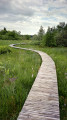 (4) À l'intersection prendre à droite pour rejoindre quelques mètres plus loin une passerelle qui serpente au- dessus de la tourbière. L'emprunter jusqu'à la plateforme d’observation qui constitue son extrémité. Revenir à l'intersection