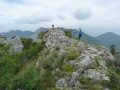À partir de là, naviguer au mieux à proximité de la crête toujours en direction Nord-Est. Peu à peu, le terrain se redresse, suivre plus ou moins cette ligne de crête. Ensuite, le sentier monte en zigzag, ne pas prendre derrière le rocher la descente de gauche, mais droit devant entre rochers et arbres qui mène sur la croupe que suivi momentanément.