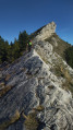 La traversée de la montagne d'Aujour se fait sur l'arrête plein Ouest avec des passages aériens, des parties herbeuses, des dédales de rochers, ainsi que des dalles principalement sur l'arrête (zone glissante). N'hésitez pas à mettre les mains lors des quelques passages techniques d'escalade.