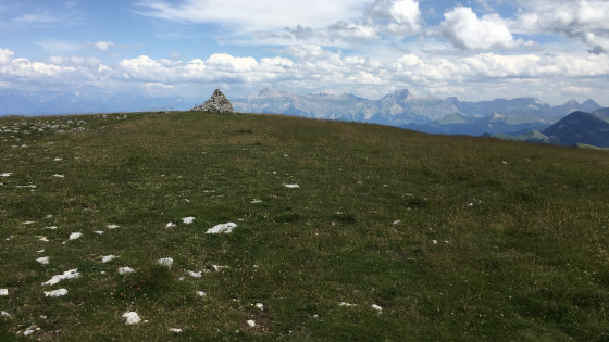 Vue sur le Grand Veymont et le Mont Aiguille à partir de la Tête Chevalière - Cairn du sommet